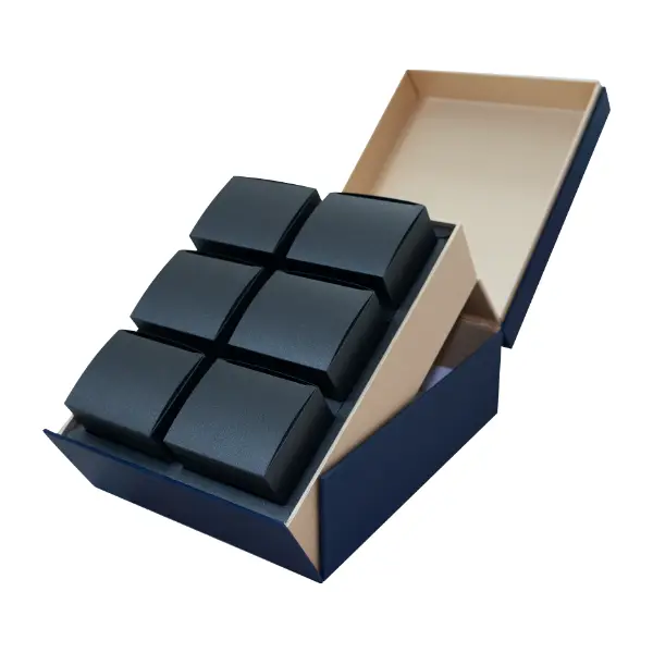 对开式开合设计,打开即呈现完整产品展示面,适配礼盒套装、节日礼品等,视觉冲击力强,适合多件装产品。