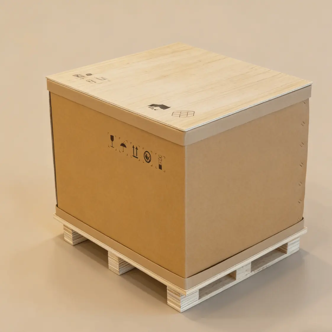 纸木一体结合重型瓦楞纸箱与定制木托盘优势,形成高强度、低重量的综合包装结构,广泛应用于机械零部件、家电整机出口。